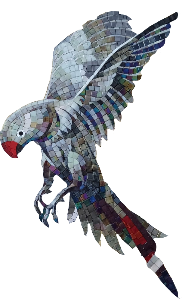 Мозаичное панно с попугаями было изготовлено в 2020 году. Заказчику очень понравилось итальянское панно, и он решил изменить его по собственному вкусу и в другой цветовой гамме. Так появилось панно с попугаями в серебре. Площадь панно: 4 квадратных метра. Стоимость изготовления панно без монтажа.